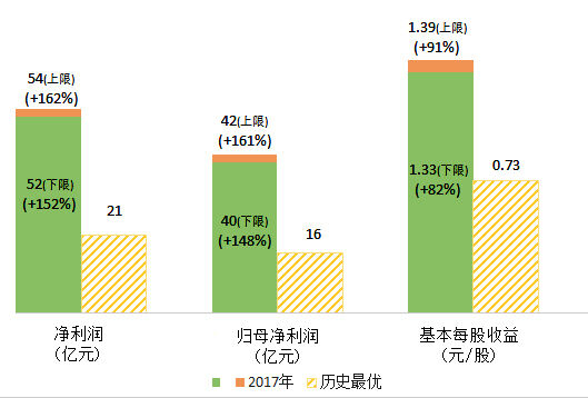 华菱钢铁1月30日公布2017年度业绩预告。公司全年粗钢、钢材产量及销量创新高,分别较历史最优水平增长12%、12%、9%。公司全年预计实现净利润52~54亿元,实现归属于上市公司股东的净利润40~42亿元,实现基本每股收益1.3264~1.3927元,创上市以来年度最优业绩,较历史最优实现大幅增长,增幅将分别达152%-162%、148%-161%、82%-91%。与公司上年同期净利润-155,293万元、归母净利润-105,517万元、基本每股收益-0.3499元/股比较,更是实现冰火逆转。