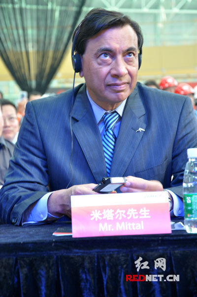 (安赛乐米塔尔董事长兼首席执行官拉克希米•米塔尔(Lakshmi Mittal)出席华菱汽车板项目投产仪式。)