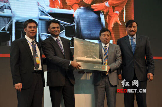 (两大股东为华菱安赛乐米塔尔汽车板有限公司(VAMA)授牌以示嘉许。)